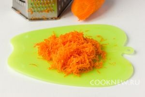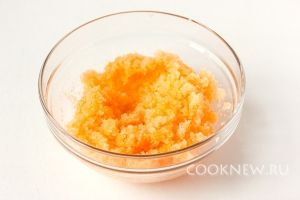 Немного моркови натираем на мелкой тёрке. Отжимаем 1 ст. л. морковного сока