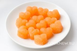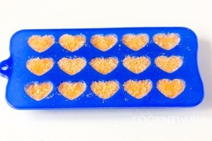 Такой сахар смотрится очень нарядно за десертным столом, согласитесь, намного интереснее подать к столу сахарницу с такими забавными «сердечками», да ещё и оранжевого цвета, чем обычный и привычный всем сахар-песок! В зависимости от ингредиента, который выбраем для окрашивая сахара, получатся кусочки сахара других цветов — можно использовать сок свеклы, тыквенное пюре, вишнёвый сок! И никаких искуственных красителей! Также в зависимости от формочек (идеально использовать формы для конфет или льда)будут соответственно и кусочки различных форм! Если такой сахар измельчить (в мелкую или крупную крошку) — получится отличная посыпка для десертов и выпечки! Хранить сахар нужно в герметически закрытой ёмкости, банке при комнатной температуре