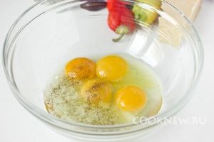 Вбиваем в миску яйца, солим и перчим.