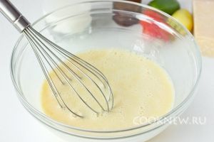 Взбиваем яйца вечиком, но не слишком усердствуем. Вливаем молоко и перемешиваем хорошенько ещё раз