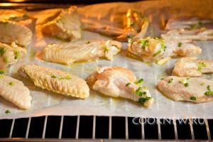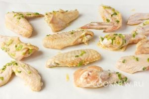 После можно приступать к их приготовлению. Выкладываем крылья на лист пергамента