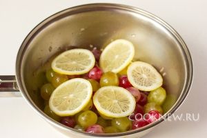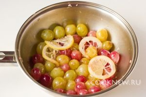 Ставим на минимальный огонь и обжариваем 5 минут. Вынимаем кружки лимона — отдав свой сок и аромат, они нам больше не понадобятся.