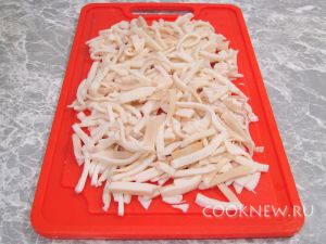 Кальмаров очистить и нарезать соломкой