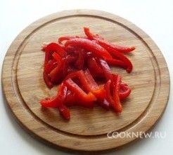 Красный болгарский перец нарезаем соломкой