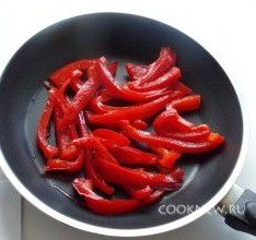 На сковороду наливаем подсолнечное масло и кладем порезанный перец