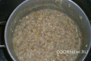 Ставим кашу на огонь и варим до загустения, при этом помешиваем почаще