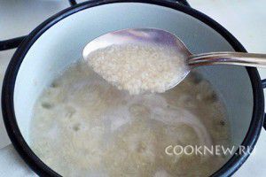 Крупу засыпаем в кастрюлю и заливаем кипятком, в пропорции приблизительно 1 : 2.