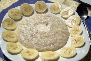 Когда каша будет готова, добавить в нее банан и перемешать. Банан даст сладость и избавит от необходимости добавлять в кашу сахар
