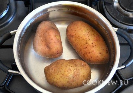 Способ 2:Отвариваем картофель в мундире в чуть подсоленной воде около 20 минут. Затем выливаем горячую воду и помещаем картофель на 2-3 минуты в холодную воду. Это позволит быстро и легко снять кожуру