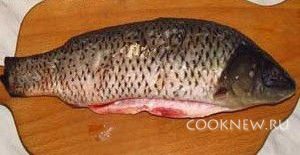Перед готовкой рыбу нужно выпотрошить, очистить от чешуи и отрезать плавники и хвост. Для удаления слизи с рыбы надо тщательно протереть ее солью, а затем промыть