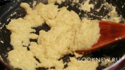 В сковороде разогреть масло, всыпать муку и поджарить ее до золотистого цвета