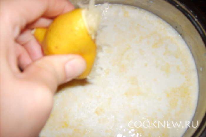 Когда молоко станет горячим, выжать в него сок одного лимона
