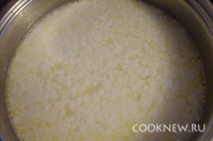 Вы увидите, что оно сразу начнет сворачиваться. Тогда можно подержать на огне еще минуток 5-7 и выключить огонь