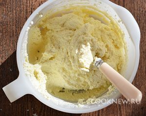 Миксером смешать творог, яйцо, муку,сахар, разрыхлитель и щепотку соли
