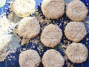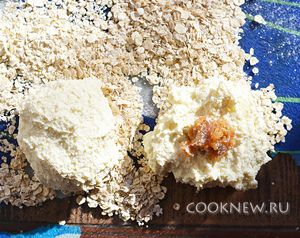 Сформовать сырники и обвалять их в овсяных хлопьях