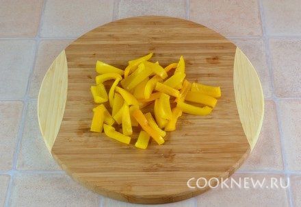 Перец порезать крупными полосками