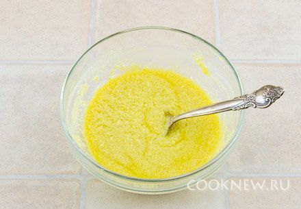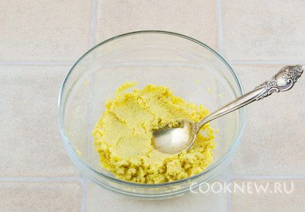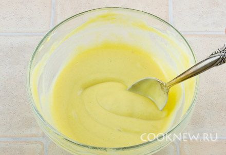 Заправку очень энергично и активно перемешать ложкой, она должна стать однородной