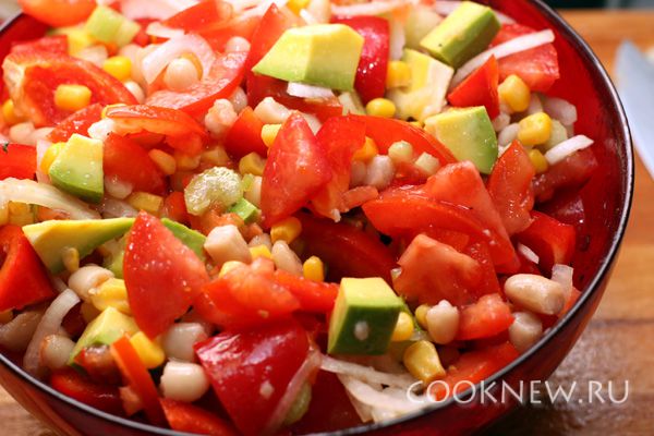 Лук тонко нарежьте. Добавьте в салат вареную или консервированную белую фасоль