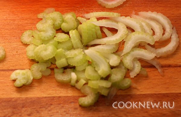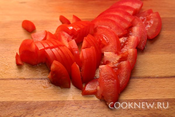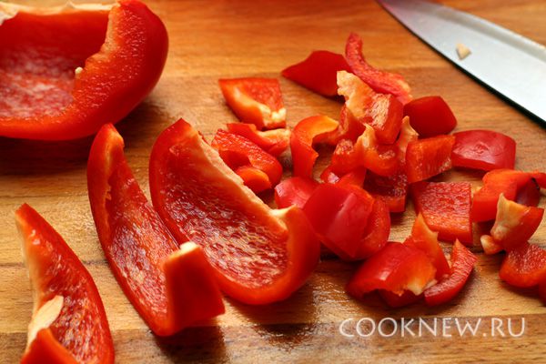 Сладкий перец очистите от семян и тоже нарежьте кубиками