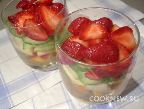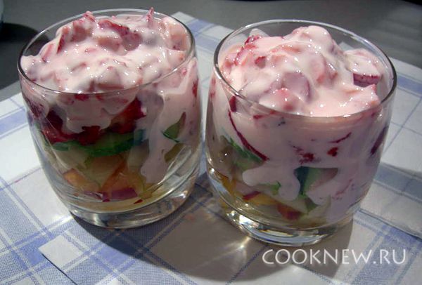 Нарезанные фрукты выкладываем слоями в прозрачные порционные емкости