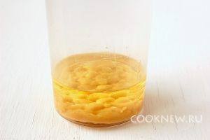 Поместить в чашу блендера мучную смесь и подсолнечное масло