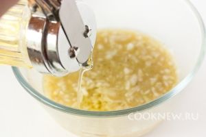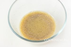 Соединяем и перемешиваем уксус, воду, горчицу, соль, сахар и чёрный молотый перец