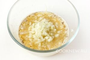 Всыпаем в маринад как можно мельче нарезанный репчатый лук.