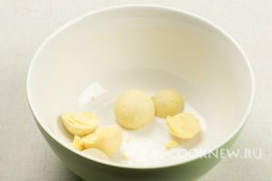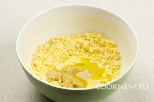 Протереть желтки через сито или тщательно размять вилкой