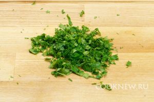 Петрушку мелко порубить, нам понадобится 1-2 горсти зелени.