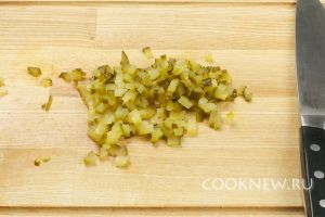 Мелко порезать 2 небольших солёных огурца