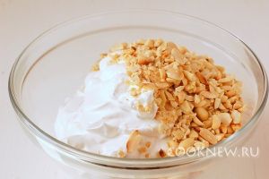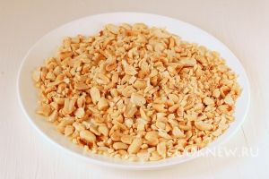 Арахис измельчить с помощью кухонного комбайна до образования средних кусочков