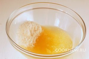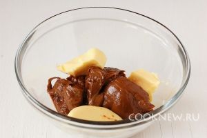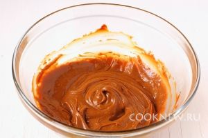 Тем временем приготовить крем: соединить сгущённое молоко и масло комнатной температуры