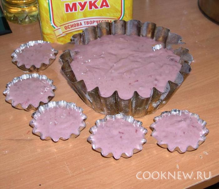 Быстро перемешать и разлить по формочкам. Выпекать до готовности.