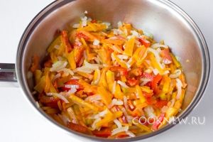 Обжариваем нарезанные овощи на раскалённой сковороде в подсолнечном рафинированном масле