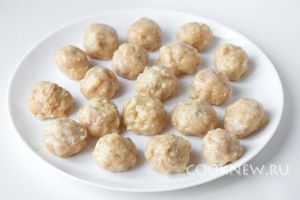 Смоченными водой руками, формируем из фарша небольшие фрикадельки размером с грецкий орех или чуть меньше