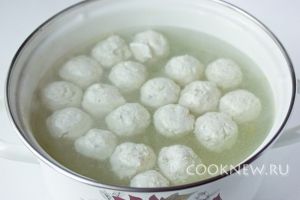 Когда картофель будет почти готов — бросаем в кастрюлю фрикадельки, постоянно перемешивая