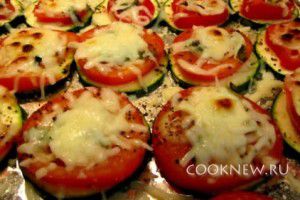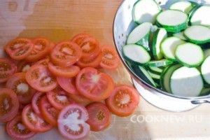 Помидоры и кабачки порезать колечками