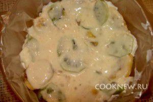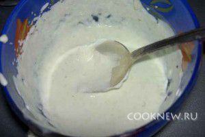 Смешиваем в миске сгущенное молоко и сметану с небольшим количеством сахара. Все взбиваем до получения однородной массы