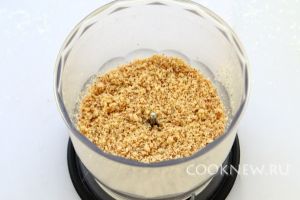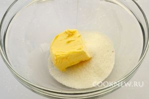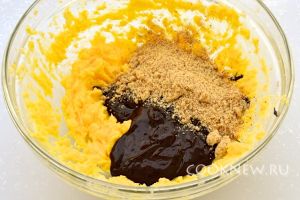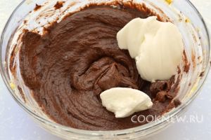 Перемешайте шоколадную массу с масляным кремом и миндалем