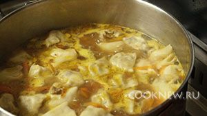 Включаем плиту на большой огонь. Подготовленные рулетики закладываем в кастрюлю, доводим до кипения и варим на маленьком огне. После того как рулетики всплывут, варим ещё 5 минут.