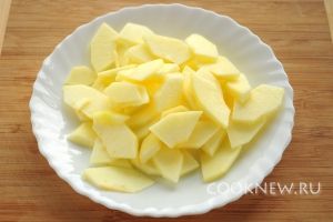 Яблоко очищаем от кожицы и сердцевины, нарезаем тонкими ломтиками