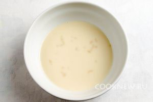 В 70 мл чуть тёплого молока распустить (растворить, размяв руками) дрожжи. Добавить половину чайной ложки сахара