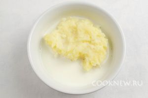 В картофельное пюре вылить оставшееся 80 мл тёплого молока. Перемешать