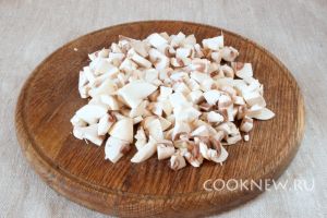 Грибы вымыть, высушить полотенцем и нарезать кусочками среднего размера