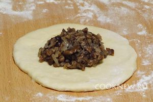 На лепёшки положить по 1 столовой ложке грибной начинки