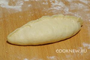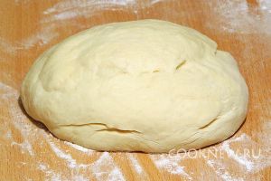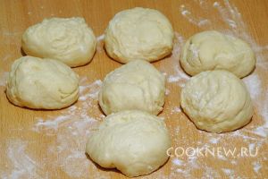 Готовое тесто положить на доску, посыпанную мукой, и разделить на кусочки
