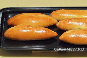 Подготовленные пирожки поставить в предварительно разогретую до 200 °С духовку и выпекать в течение 25–30 минут