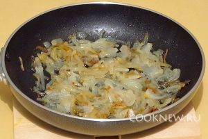 Лук пошинковать и обжарить до лёгкого подрумянивания