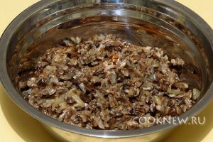 Грибную массу пропустить через крупную решётку мясорубки