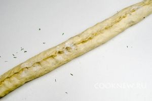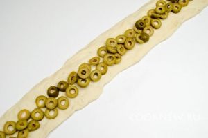 Вторую полосу наполнить резаными маслинами. Закрыть и хорошо защипить края пальцами